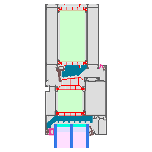 Aluminium frame with thermal separation (Insulbar LI 0.21 W/(mK)) and insulation insert (aerogel 0,016 W/(mK)). Pane thickness: 48 mm (4/18/4/18/4), rebate depth: 15 mm.