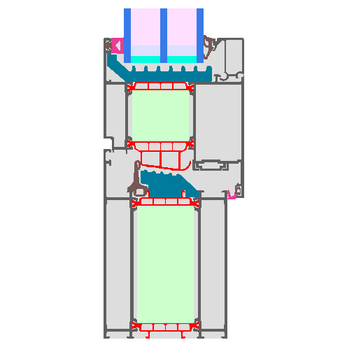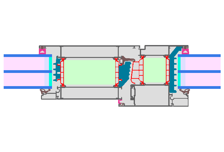 Aluminium frame with thermal separation (Insulbar LI 0.21 W/(mK)) and insulation insert (aerogel 0,016 W/(mK)). Pane thickness: 48 mm (4/18/4/18/4), rebate depth: 15 mm.