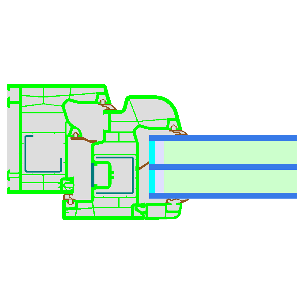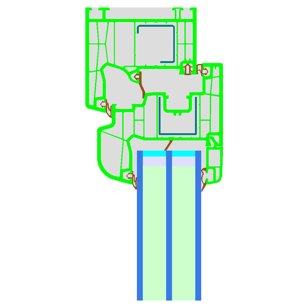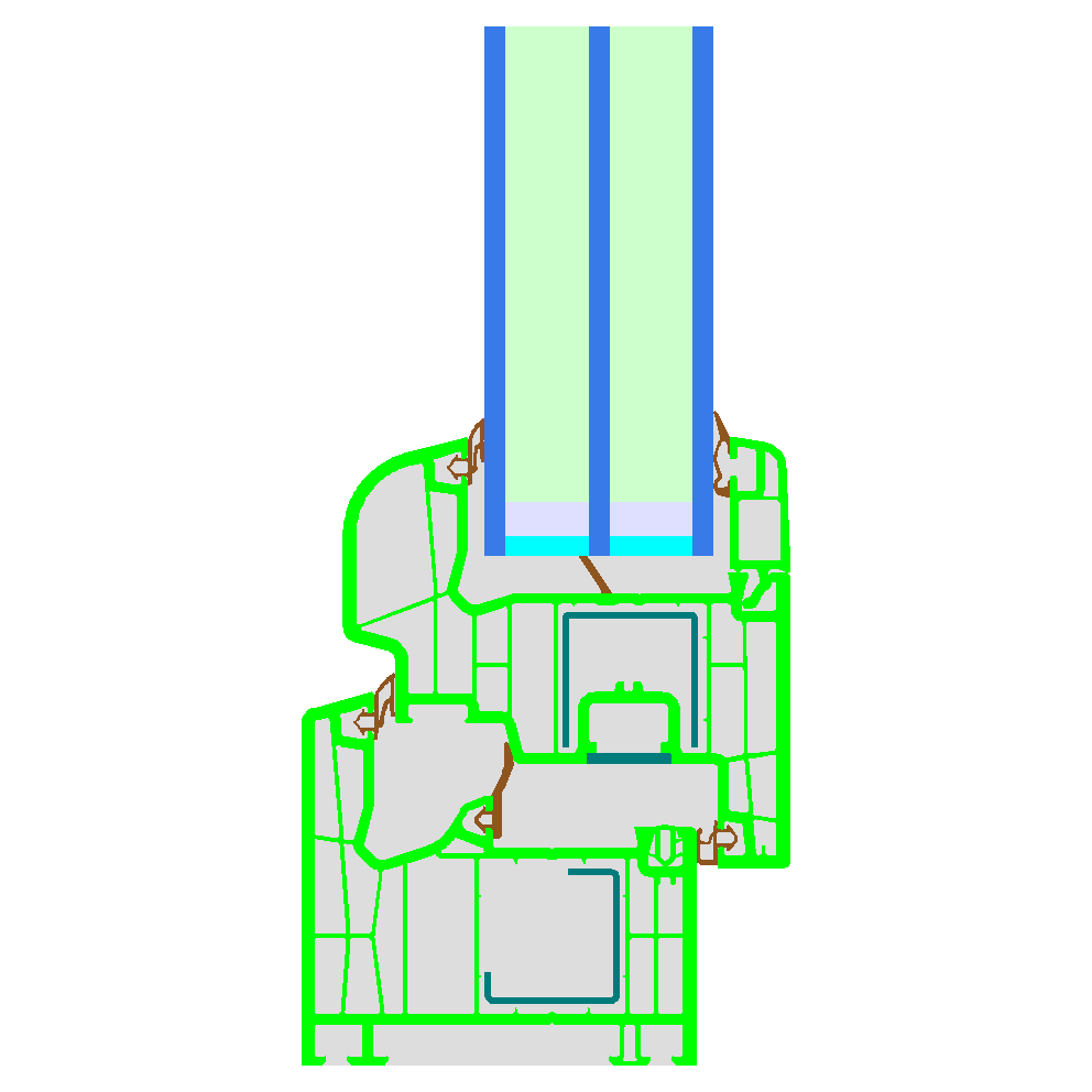 PVC window frame reinforced with steel in both the frame and the sash. Pane thickness: 44 mm (4/16/4/16/4), rebate depth: 23 mm. Pane thickness: 44 mm (4/16/4/16/4), rebate depth: 23 mm. Spacer: SWISSPACER Ultimate with butyl as secondary seal.