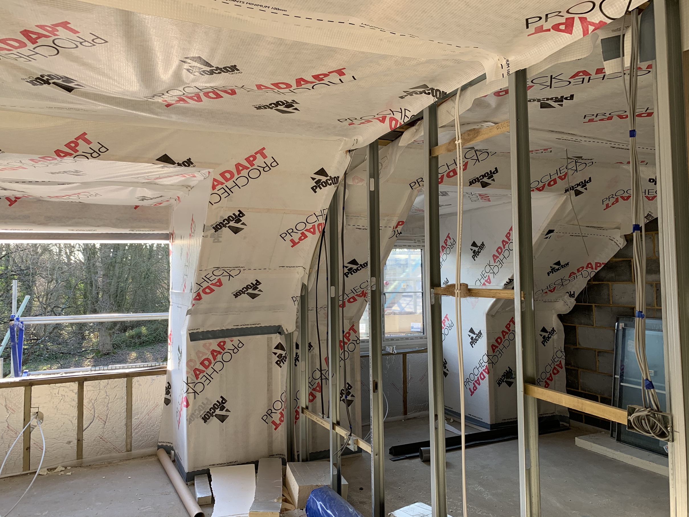 System components Air and Vapour Control Layer with variable permeability Airtight membrane „Procheck Adapt“ Self-adhesive Tape „Wraptite tape“ (75 mm)