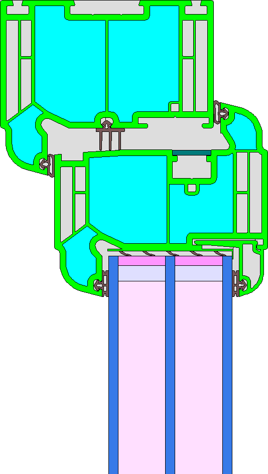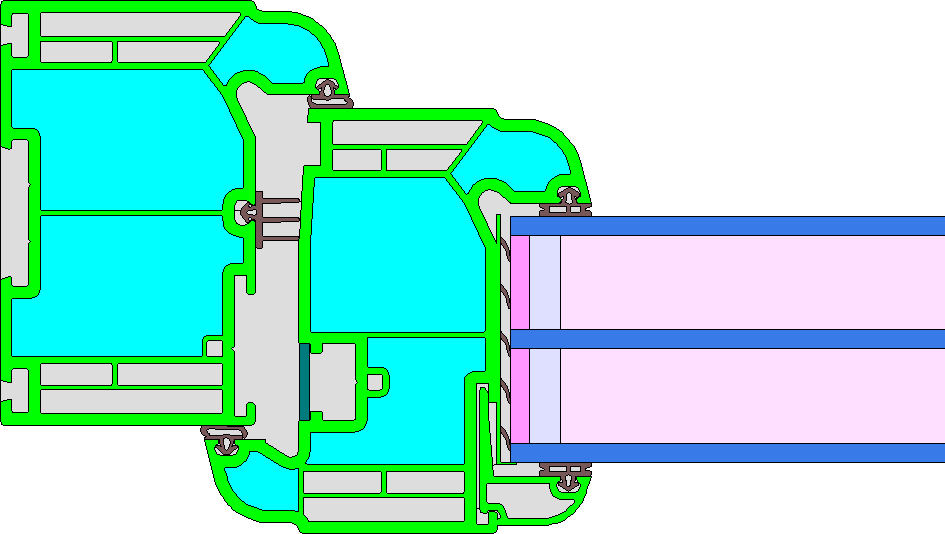 Vinyl frame, partly insulated cavities with PU-foam (0.028 W/(mK)). Pane thickness: 52 mm (4/20/4/20/4), Rebate depth: 17 mm.